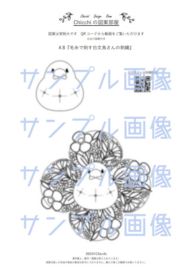 印刷済み配送用刺繍図案 #8毛糸で刺す白文鳥さんの刺繍 おまけ図案付き